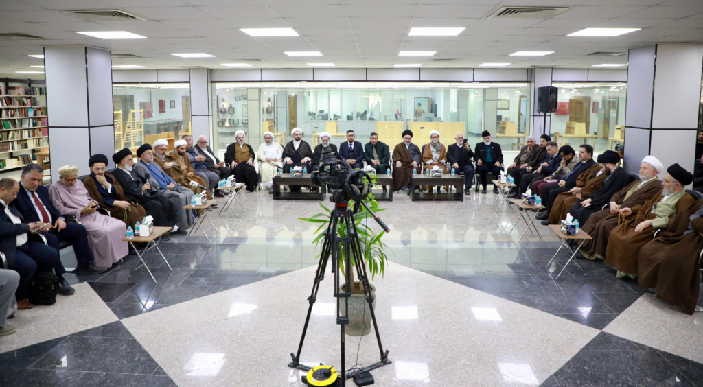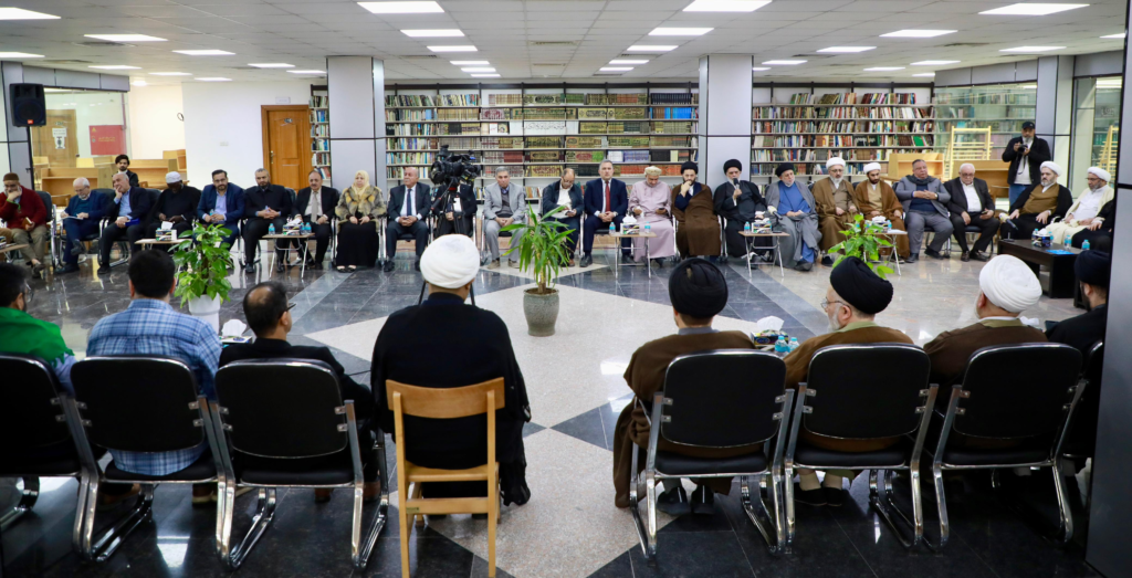 عقد معهد العلمين للدراسات العليا يوم الأحد، 9 فبراير 2025، جلسة حوارية مميزة. استضافت الجلسة نخبة من رجال الدين والأكاديميين والناشطين من أتباع أهل البيت (ع) من دول عربية وإسلامية. حضر اللقاء الأمين العام لمؤسسة بحر العلوم الخيرية، الدكتور السيد محمد علي بحر العلوم، وعميد معهد العلمين، الأستاذ الدكتور زيد عدنان العكيلي. كما شارك عدد من أساتذة الحوزة العلمية، ورجال الدين، وأساتذة الجامعات، والشعراء، والأدباء من النجف الأشرف.