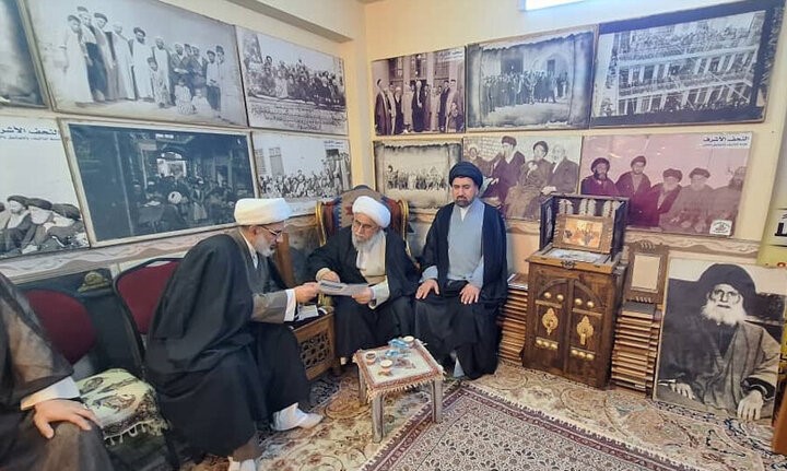 بالصور: آية الله رمضاني يزور مركز توثيق تراث حوزة النجف العلمية