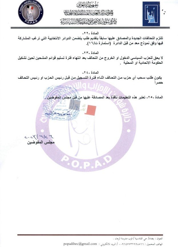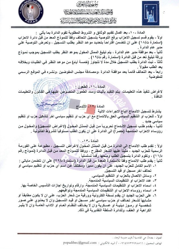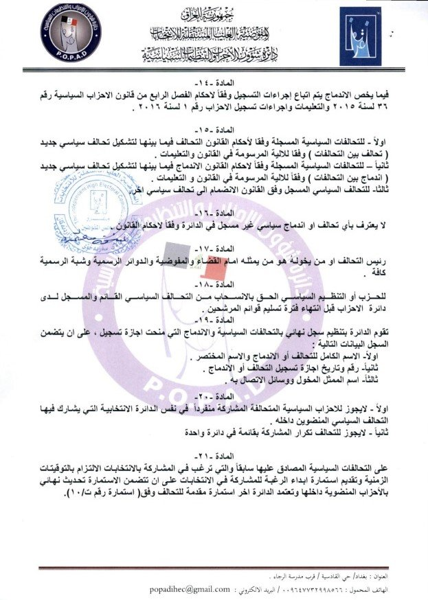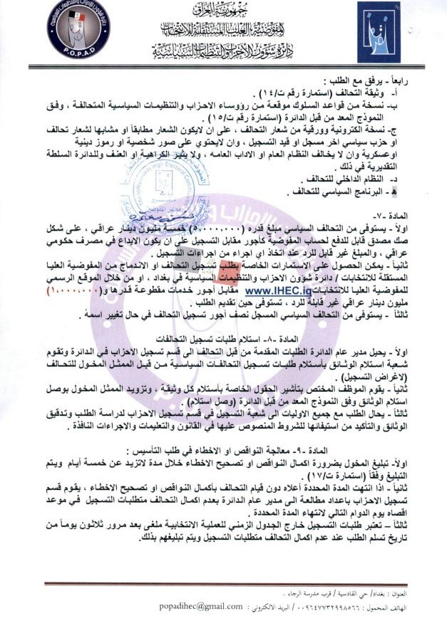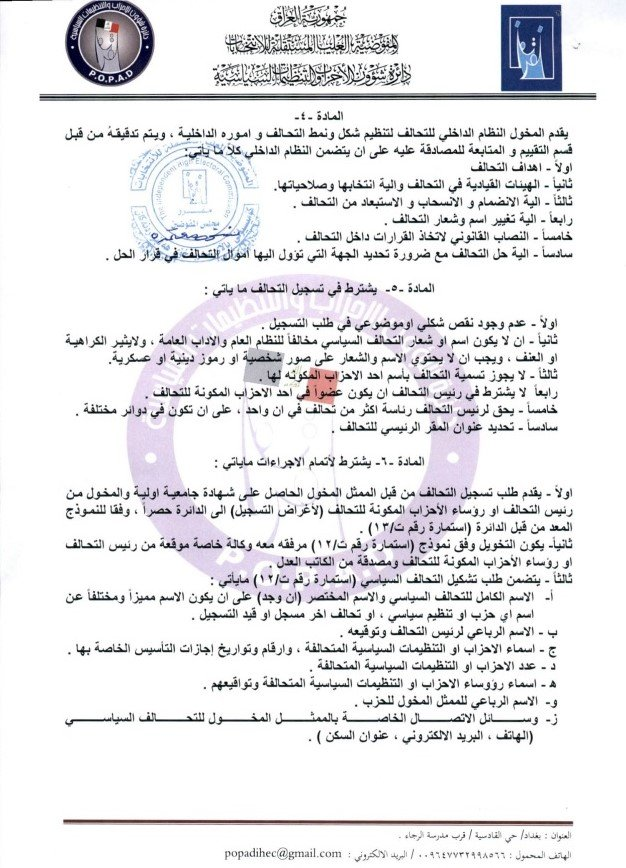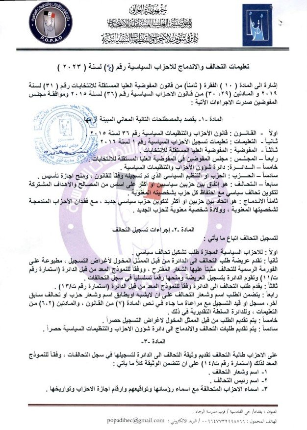 أعلنت المفوضية العليا المستقلة للانتخابات مواعيد تسجيل التحالفات السياسية للانتخابات البرلمانية المقبلة.