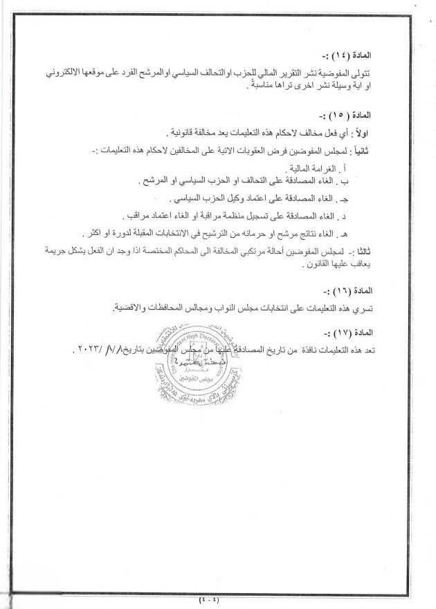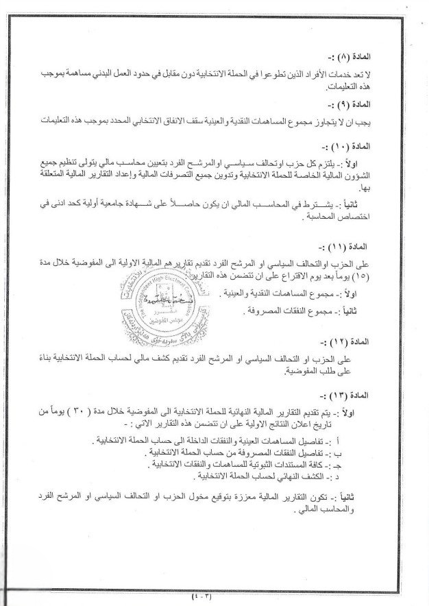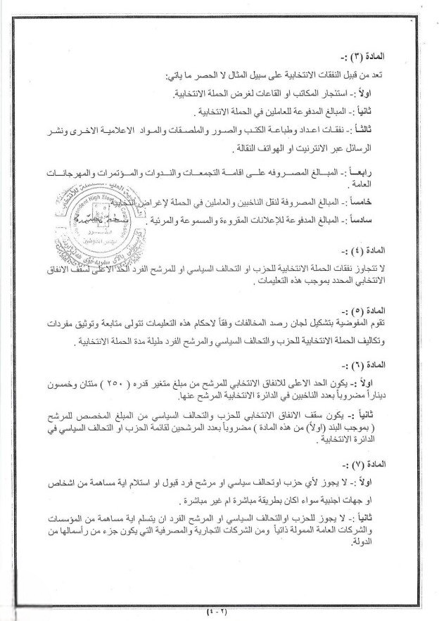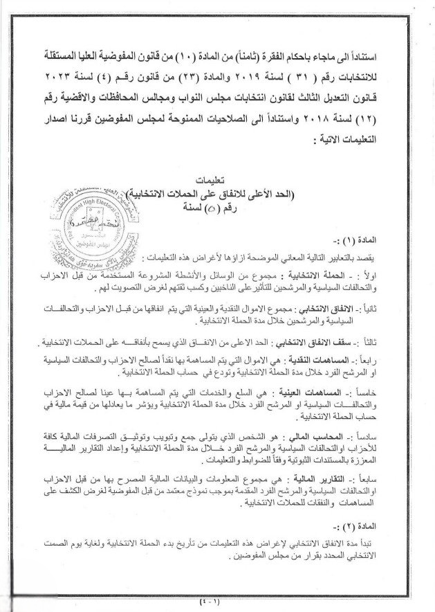 علاوة على ذلك، أكد البيان أن القرار يأتي استناداً إلى الصلاحيات الممنوحة لمجلس المفوضين. قرر المجلس إصدار تعليمات محددة بشأن سقف الإنفاق الانتخابي.