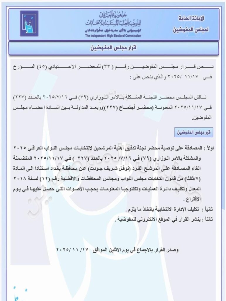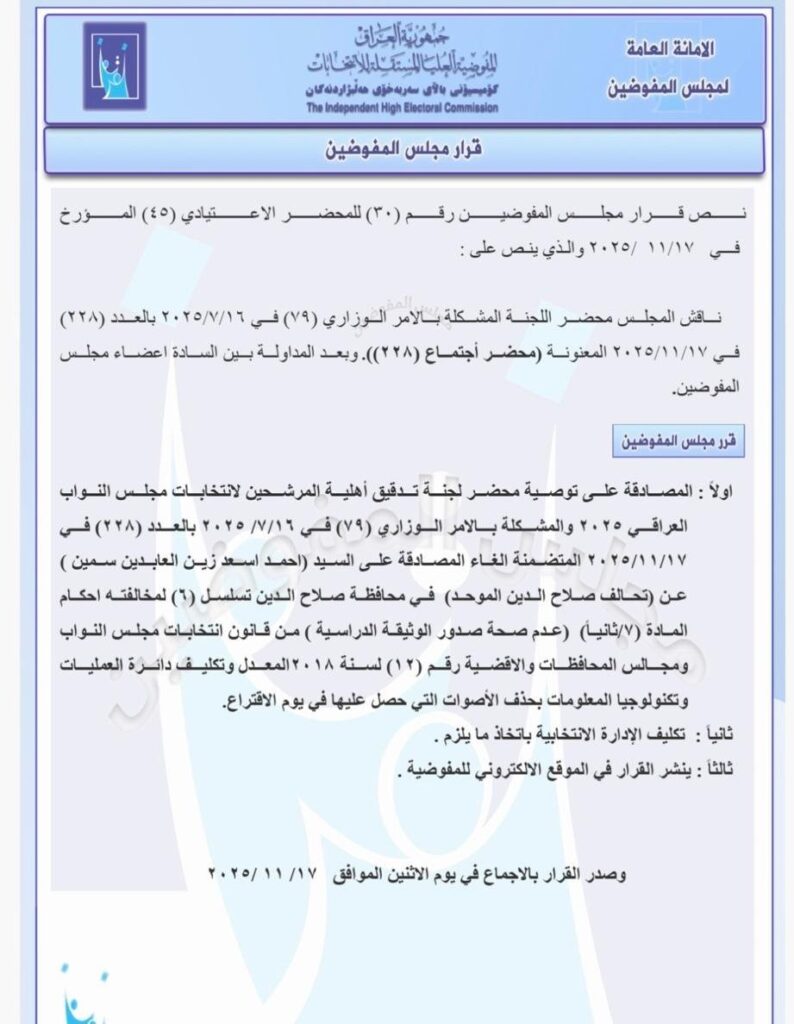 المفوضية تسحب المصادقة من عدة مرشحين وتلغي أصواتهم في الانتخابات العراقية