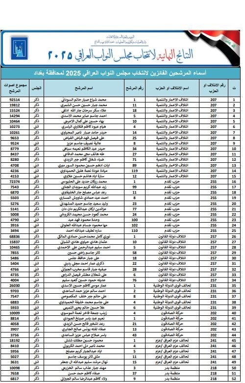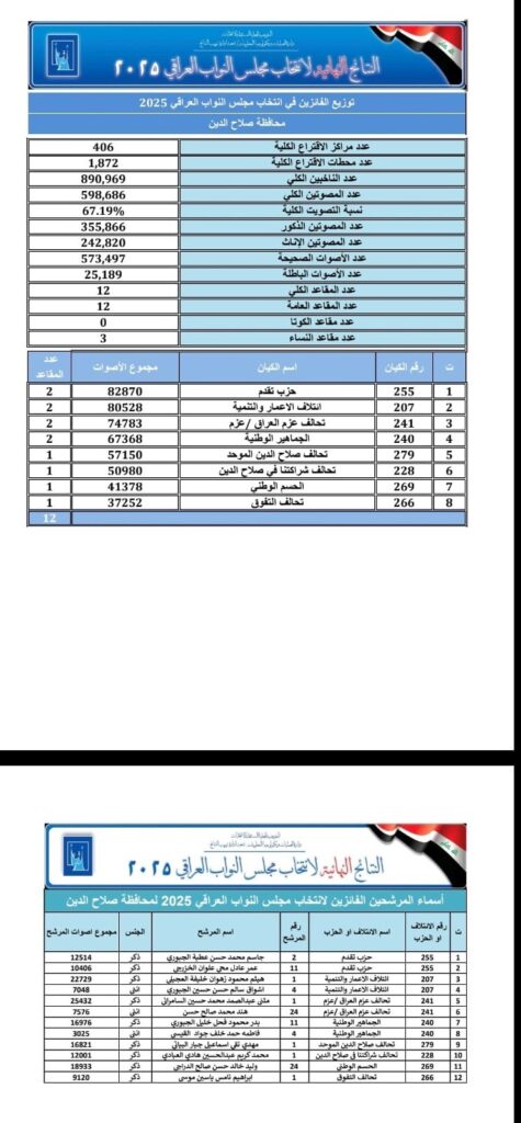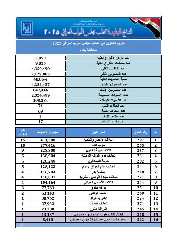 النتائج النهائية للانتخابات البرلمانية العراقية 2025: تعرف على القوائم الفائزة