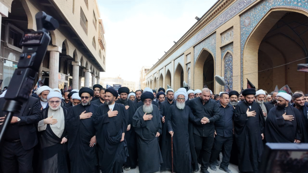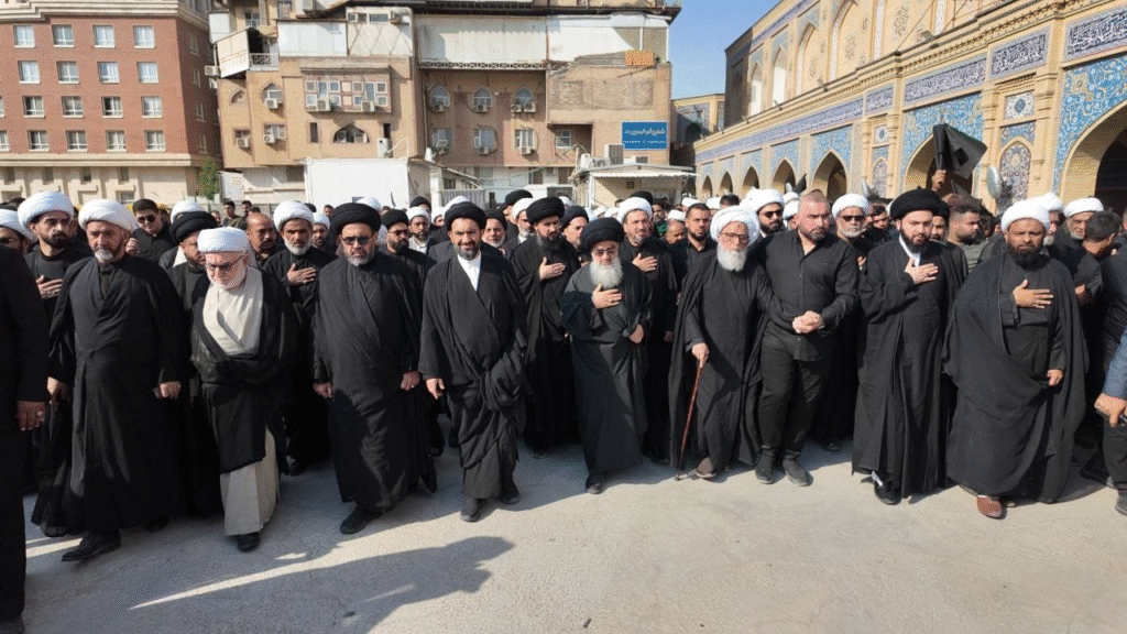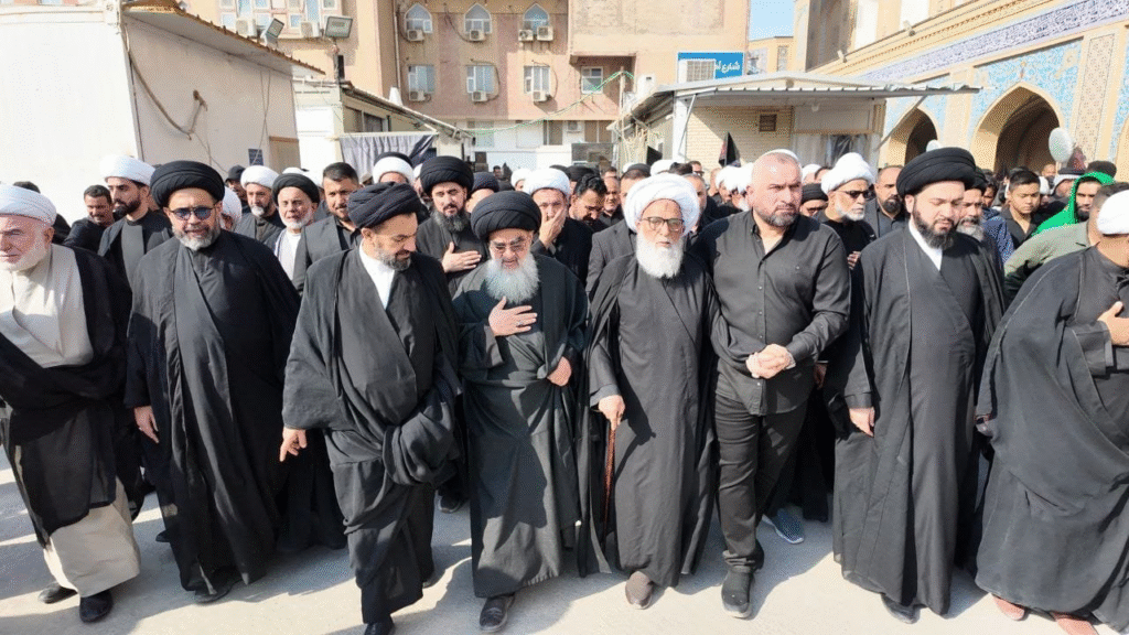 شهدت مدينة النجف الأشرف اليوم مسيرة حاشدة لإحياء ذكرى استشهاد السيدة فاطمة الزهراء (عليها السلام). انطلقت المسيرة السنوية من مكتب المرجع الديني الشيخ بشير النجفي (دام ظله) متجهة إلى المرقد العلوي المطهّر.