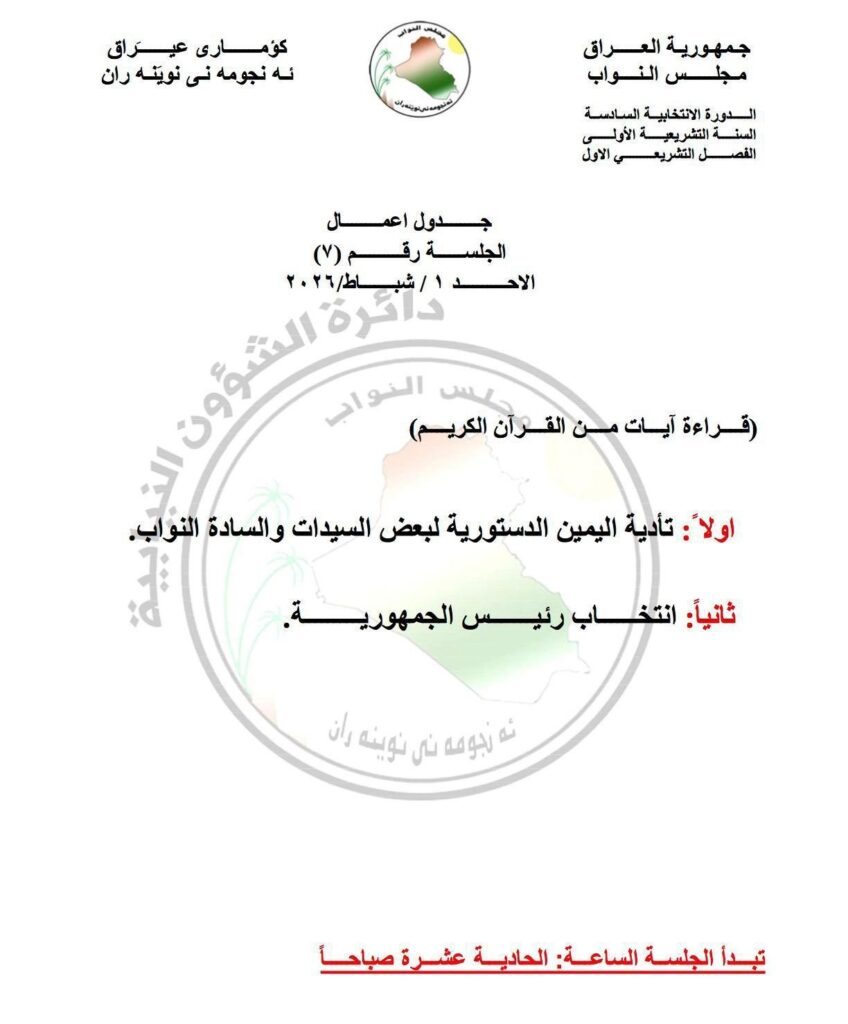 أعلن مجلس النواب العراقي عن تحديد موعد جلسة انتخاب رئيس الجمهورية. وستعقد الجلسة المهمة يوم الأحد المقبل في بغداد.