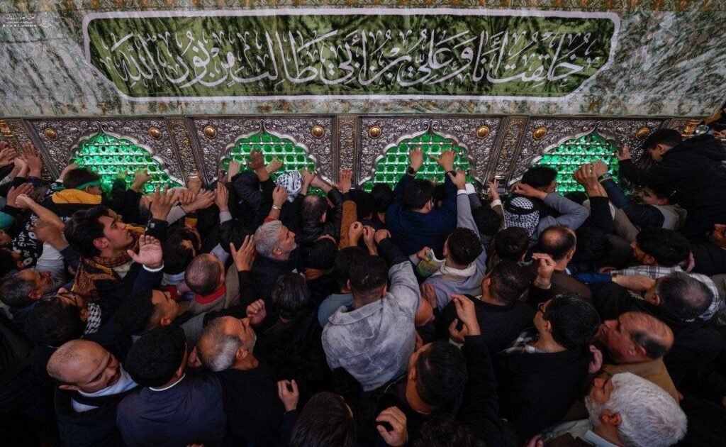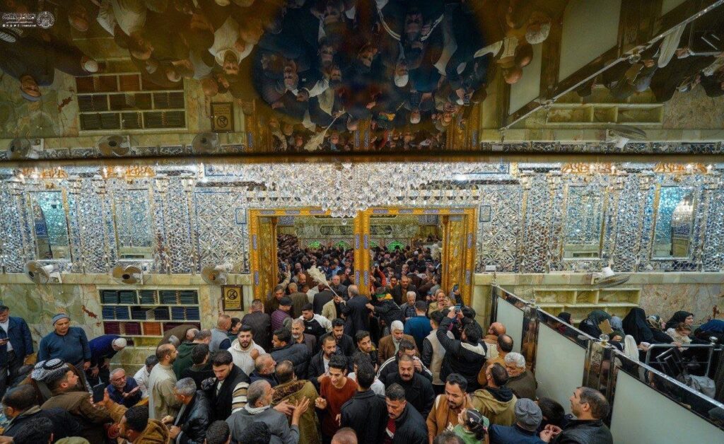 ويقدم الزائرون التهاني والتبريكات في هذه المناسبة الدينية العظيمة. وتشهد شوارع النجف حركة استثنائية من المؤمنين القادمين من مختلف المحافظات. كذلك يحرص الزائرون على إحياء هذه الذكرى العطرة وسط أجواء إيمانية مميزة.