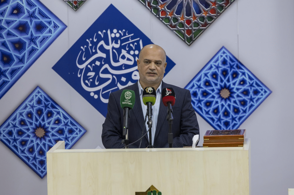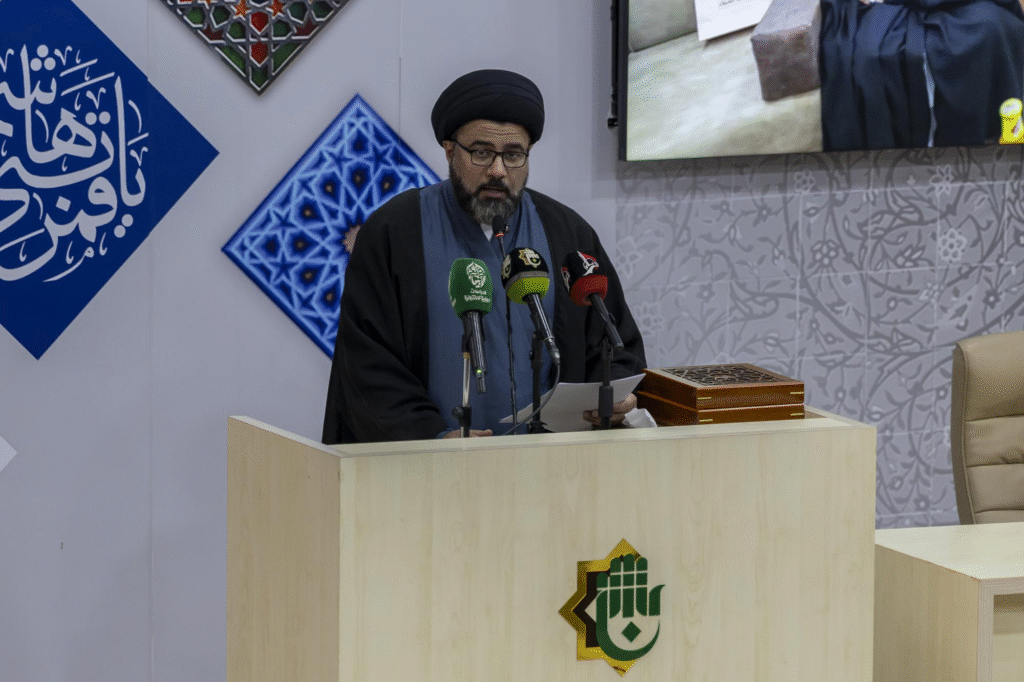وبناءً على ذلك، استهل المؤتمر بتلاوة آيات من القرآن الكريم. علاوة على ذلك، قرأ الشيخ ياسين العذاري الآيات المباركة. بعد ذلك، تلا الحضور سورة الفاتحة ترحماً على أرواح العلماء والشهداء.