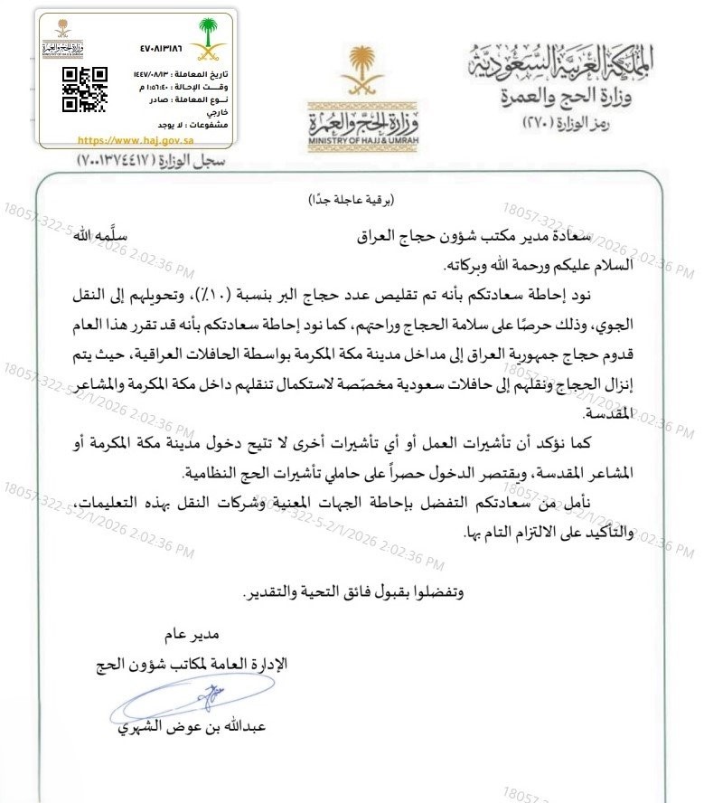 قرار سعودي جديد بتحويل 10% من الحجاج العراقيين من النقل البري إلى الجوي